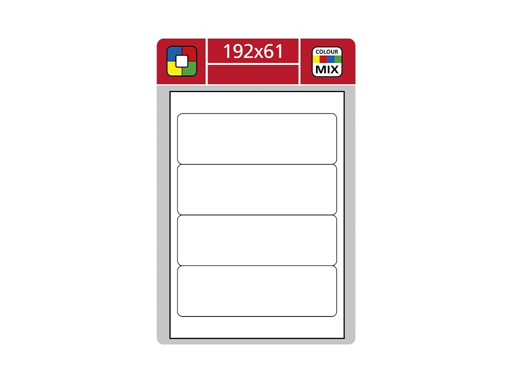 Samolepicí etikety na arších formátu A4, určeny pro použití v laserových a inkoustových tiskárnách a kopírovacích strojích. Jsou vyrobeny násekem horní samolepicí vrstvy se silně lepivým akrylátovým lepidlem na vodní bázi.