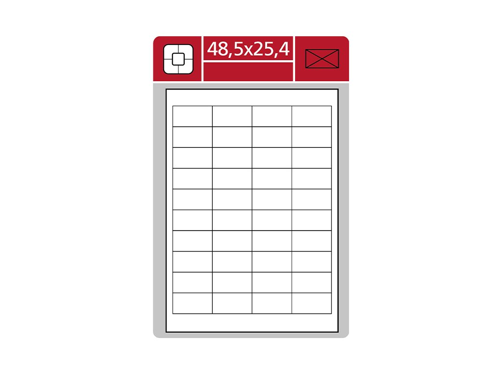 Bílé etikety na arších A4 určené pro kopírování nebo potisk v laserových a inkoustových tiskárnách. Jsou vyrobeny násekem horní samolepicí vrstvy se silně lepivým akrylátovým lepidlem na vodní bázi.