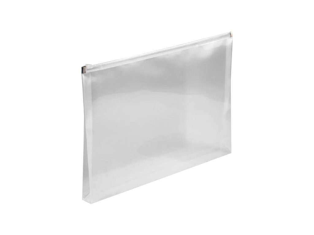 Průhledné polypropylenové obaly uzavíratelné na zip. Spodní a boční klínek umožňuje zakládání objemnějších dokumentů, katalogů nebo ceníků.