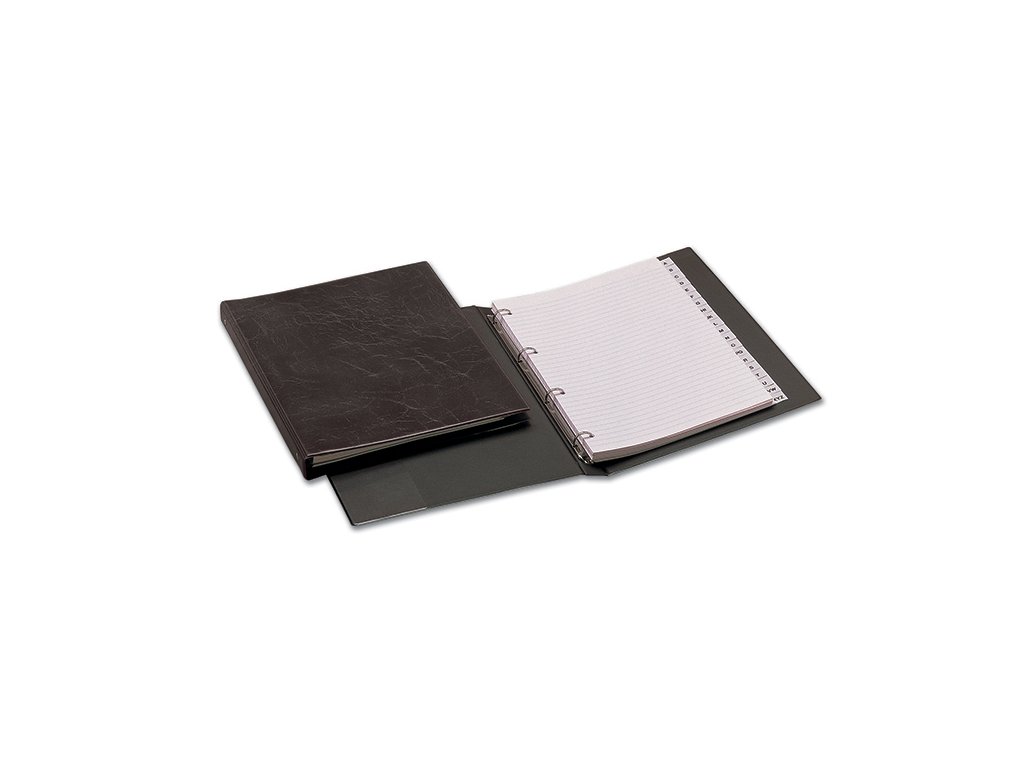 Plastikové desky formátu A5 se 4 kroužkovou mechanikou, na které jsou zavěšeny linkované listy z bílého bezdřevého papíru. Listy je možno snadno vyměňovat nebo doplňovat. Desky černé.