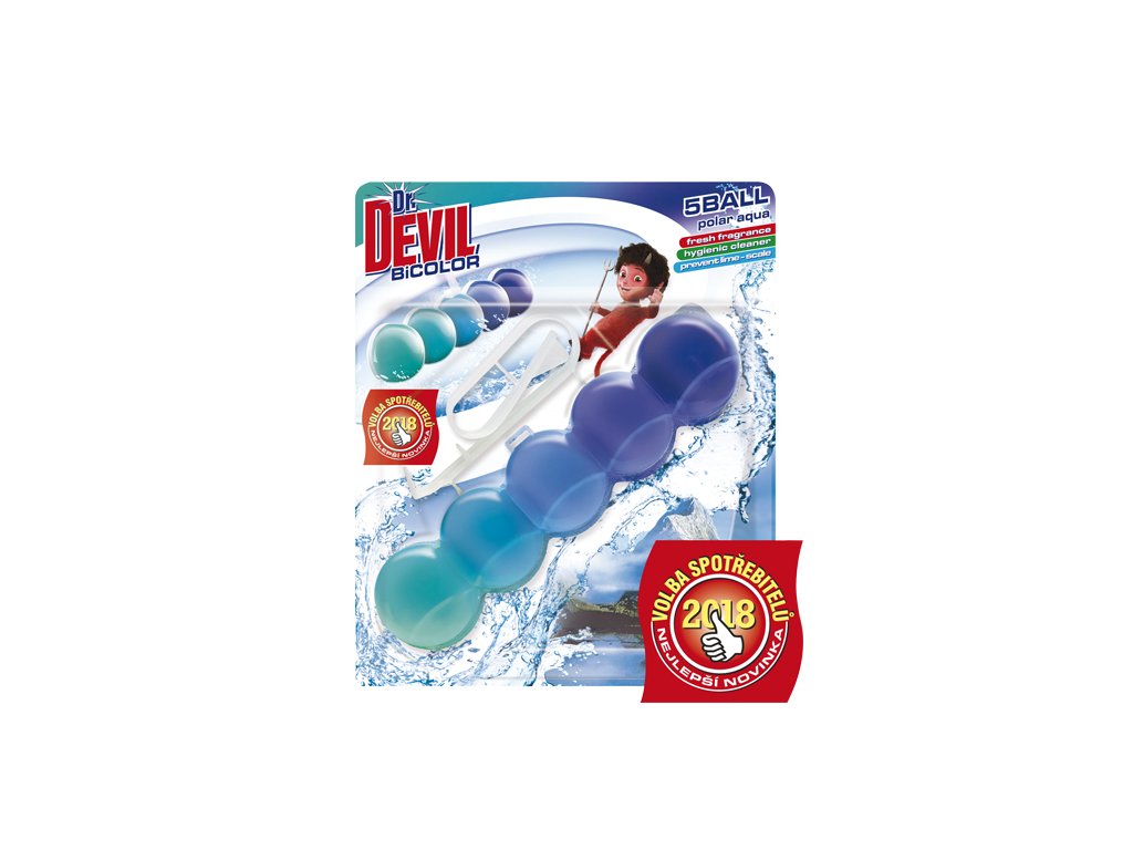 Dr. Devil WC BiCOLOR 5BALL voní, čistí a preventivně působí proti usazování vodního kamene.